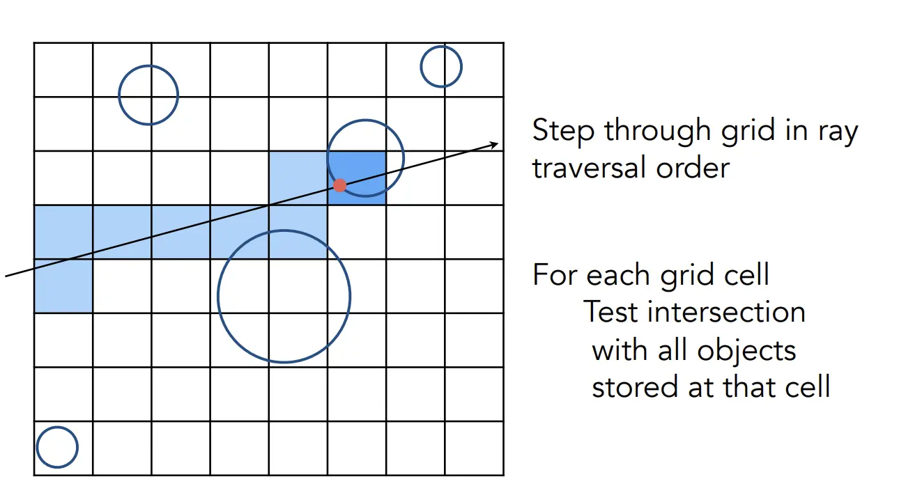 - 把AABB划分成小格子,每个光线穿过的格子,都对cell内的三角形进行求交运算。